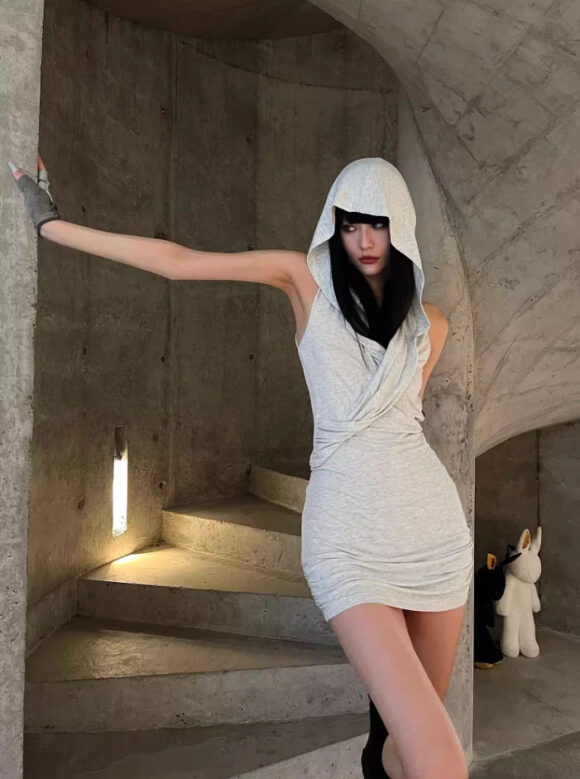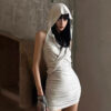 Whatpromdress Hooded Waisted Short Hottie Dress – Casual Bodycon Streetwear Mini Dress for Women